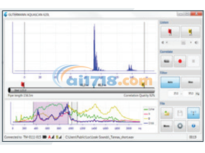 高度精密的 “自動(dòng)濾波” 功能會(huì)自動(dòng)選擇*相關(guān)的感興趣頻段,并進(jìn)一步放大,以生成明顯的峰值。無(wú)需再手動(dòng)調(diào)整濾波器來(lái)嘗試識(shí)別可能的泄漏噪聲源,也不再對(duì)是否存在泄漏存在疑問。AQUASCAN 620L 會(huì)為您完成這一切,甚至一次相關(guān)分析*能定位多個(gè)泄漏點(diǎn)。