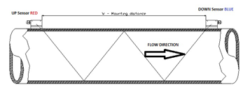 儀器將會在MENU25中顯示傳感器的安裝距離,此時,便可以開始安裝傳感器了,安裝前應(yīng)該在管壁上涂抹耦合劑,否則傳感器與管壁會接觸不良。