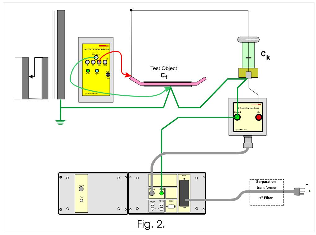 所選的高輸出(圖2中的100pC)必須通過短引線連接到測試對象的高壓端子上。