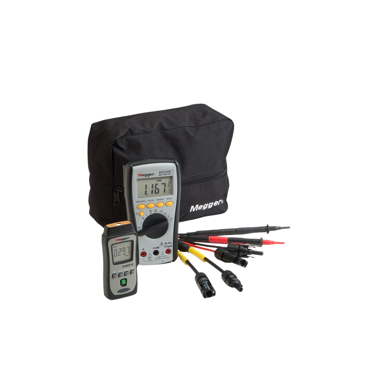 在光伏系統(tǒng)的安裝、調(diào)試和測試過程中,除了美格多功能測試儀(MFT)等常規(guī)電工測試設(shè)備外,還需要額外的儀器。Megger PVK320 光伏套件便提供了這類額外儀器,包含 PVM210 輻照度計(jì)、CAT IV 10A 直流 AVO410 萬用表以及一套光伏測試導(dǎo)線。