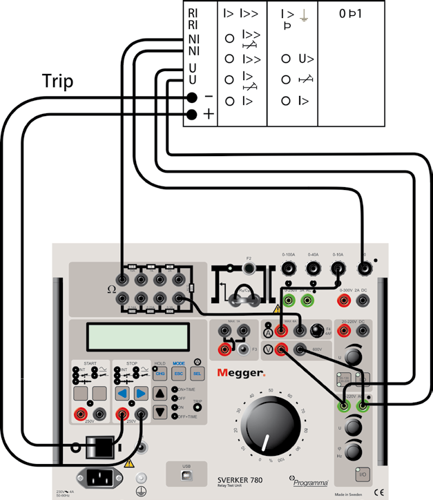 ?SVERKER 780帶有許多使繼電器測試高效的功能。比如,它功能強(qiáng)大的測試部分可以顯示除時間、電壓和電流之外的 Z、R、X、S、P、Q,相位角和cos φ。電壓表也可以用作第二電流表(比如在進(jìn)行差動繼電器時)。所有讀數(shù)都顯示在一塊易于閱讀的顯示屏上。您也可以通過內(nèi)置的可變電壓源高效地測試方向保護(hù)設(shè)備。