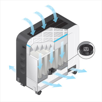 ?一層V形槽純凈椰殼活性炭主過濾網(wǎng),載有總重量達(dá)6.5kg的純凈椰殼活性炭,特別有效過濾≤0.3微細(xì)污染顆粒物及高效過濾重度污染, 有效去除裝修所散發(fā)的甲醛和苯, 香煙煙氣、廚房油煙、燃煤所致等各種煙氣, 揮發(fā)性有機(jī)物(VOC’s), 臭氧和異味