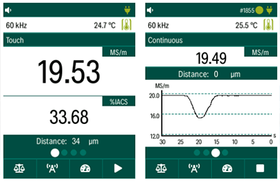 | 測量范圍 | 0.5 到 65 MS/m 或 1 到 112 % IACS |