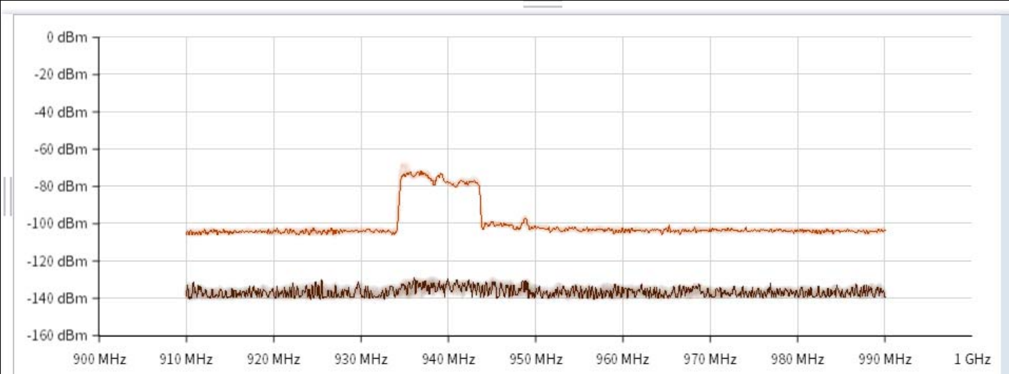 通過測試發(fā)現(xiàn)外部環(huán)境存在同樣940MHz頻帶下的信號,且幅值更大,且兩條掃頻曲線趨勢一致,認(rèn)為該信號為外部信號。