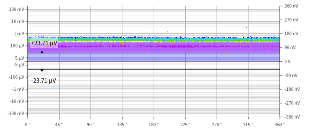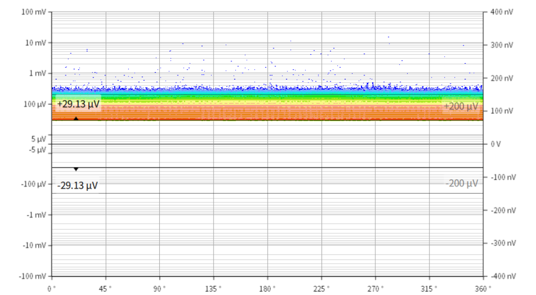 通過測試發(fā)現(xiàn)PRPD圖譜無明顯極性分布特征,為進(jìn)一步分析信號來源,對該位置背景進(jìn)行測試。